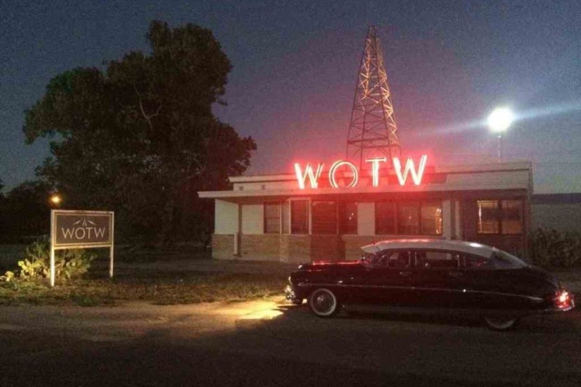 I admire how this movie was shot — there are many interesting, complex shots, long takes, and tracking shots that worked nicely. The cars, the clothes, and even the eyeglasses worn by the characters capture the vibe of the 50s beautifully. The whole Twilight Zone, Outer Limits mood, is skillfully done. Even the name of the radio station is pretty neat; WOTW …. (War of the Worlds?).