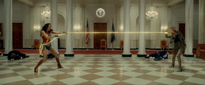 Steve Trevor not being a more significant part of the plot here like he was in the original Wonder Woman was a bummer. Also, the White house fight scene was bizarre and ridiculous. The plot’s globetrotting parts are flimsy, and I was not too fond of all the Middle East scenes.