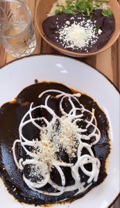 Next, we had the Costillitas con Mole Negro (Slow-braised baby back ribs, with mole negro and crema). And the Enchiladas de Mole Negro (Braised brisket, sesame seeds, Cotija cheese, and crema) — It was a Mole Negro party.