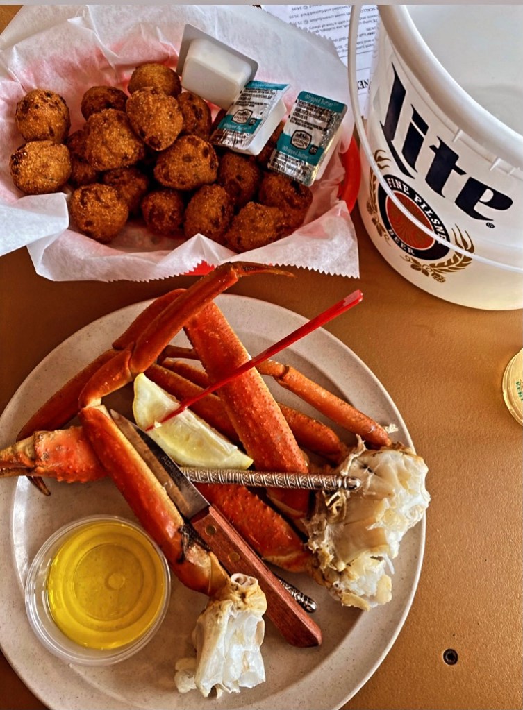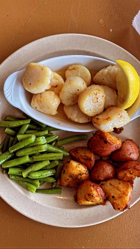 We kept things simple and had some golden fried hush puppies and some tasty Crab Legs, followed by scallops and Crab Cakes; It was all great stuff.