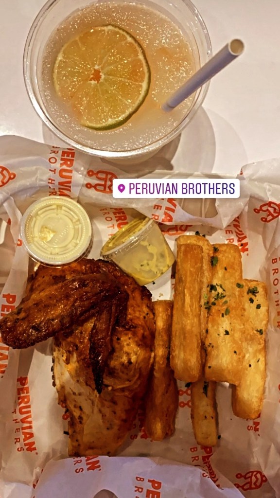 Ok, for the food, we ate lunch at Peruvian brothers (La Cosecha Marketplace), we had their Peruvian chicken (the classic Pollo a la brasa Peruvian dish). It was a hot-ass summer afternoon, so I ordered a frozen Pisco slushy to pair with my Pollito a la brasa. The chicken was tasty and flavorful, but it would probably not make my top list of Peruvian-style chicken restaurants in the DMV — Still, it was, by far, much better than any Peruvian Chickens I’ve had in NYC and New Jersey.