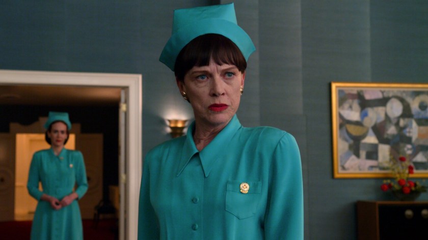 Ratchet is an origin story, told in a Ryan Murphy way, adding a modern sensibility to a period piece, along the same lines as Murphy’s Hollywood Netflix series. It is a highly stylized TV show with extensive uses of colors and fantastic location shots. It is a very visual show, with excellent production quality, set designs, costumes, and cinematography. There are many Hitchcock and David Lynch influences in it — Simply put, it is visually a beautiful show to watch.