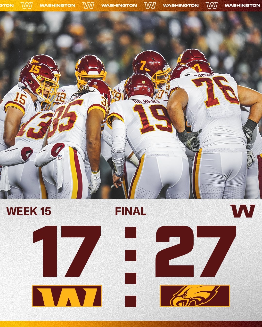 And on top of all that, we had players out due to injuries, like JD McKissic, Logan Thomas, and Chase Young. These last 2 are gone for the year, but Mckissic should come back soon.