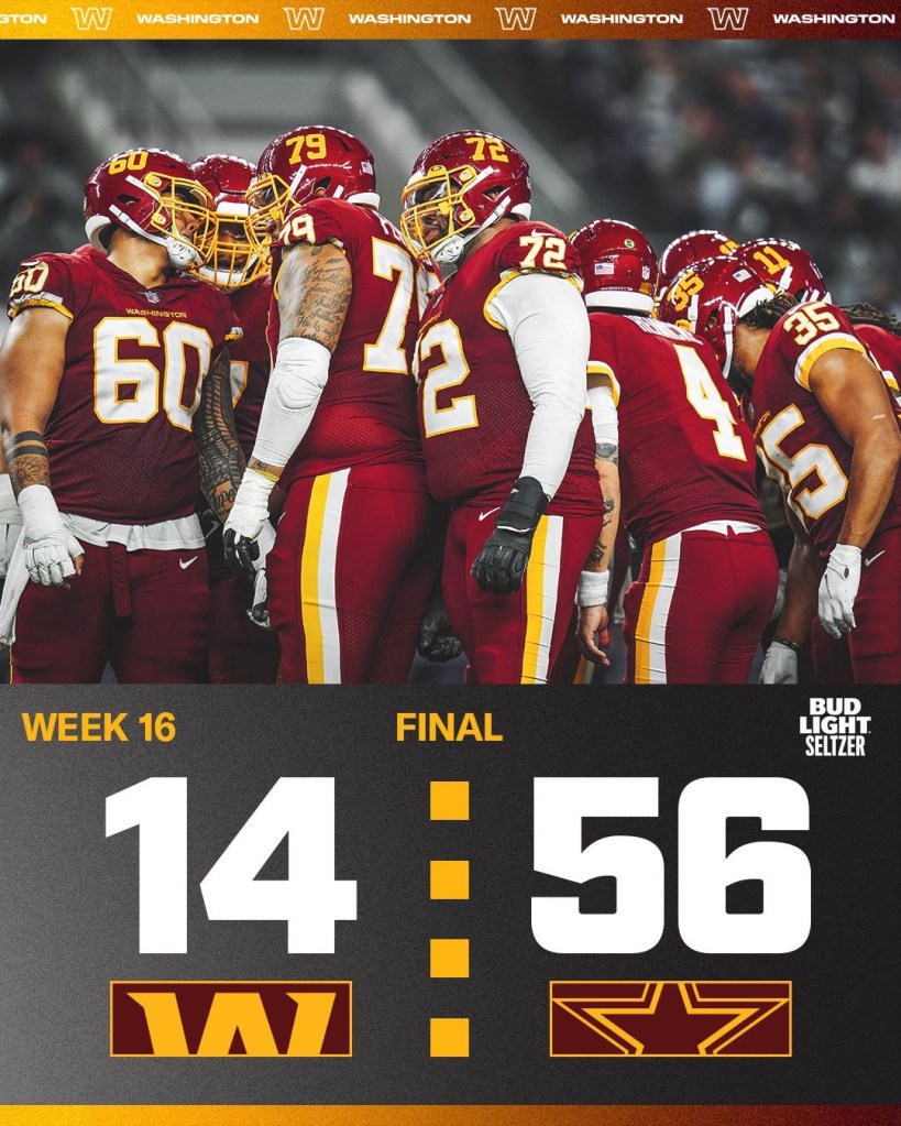And to make things even worse, we all saw the sideline altercation between Jonathan Allen and Daron Payne. Nobody knows for sure what really happened or what was said, but I hope it was all about holding each other accountable and not some nonsense — hopefully, this incident doesn’t turn into a bigger mess in the off-season.