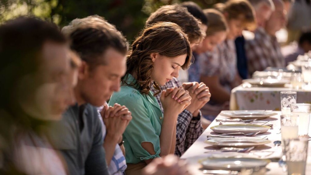 The story follows a police detective Jeb Pyre (Andrew Garfield), who investigates the murder of a young woman and her baby. It also explores the early days and formation of the church of Jesus Christ of Latter Day Saints, aka the Mormons, their extreme fundamentalist roots, and their unflattering history. The clashing between Mormons, fundamental Mormonism (FMLDS), and former Mormons take center stage here. It is all about disturbing, violent things — and extremist views.
