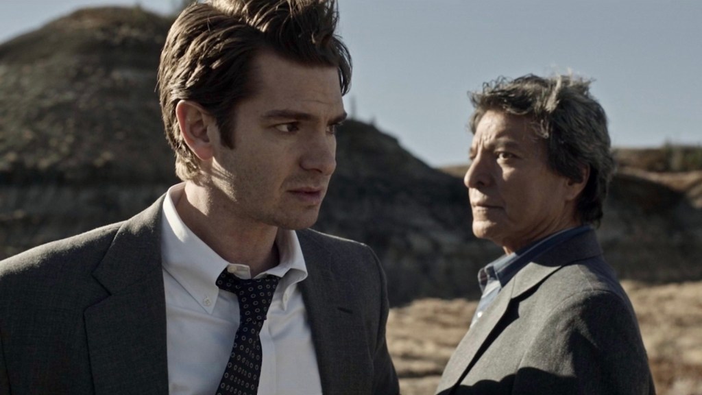 Nonetheless, Andrew Garfield is excellent — His detective work leads him to challenge all of his beliefs; He goes from this die-hard Mormon to having a crisis of faith. Jeb is a well-conceived fictional character, serving as a framing device for the audience to understand things better. Also, Detective Taba is a pretty compelling character, serving as a stand-in for a non-Mormon perspective.