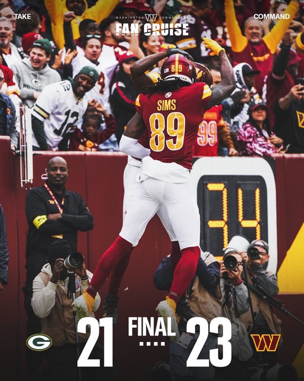 Our Defense took advantage of Green Bay’s weak O-line, and we made Aaron Rodgers life miserable, which brought joy to my heart. Our secondary is working together better without William Jackson III, who is now officially on the trading block. I really hope this win is the building block of a winning season for Washington.