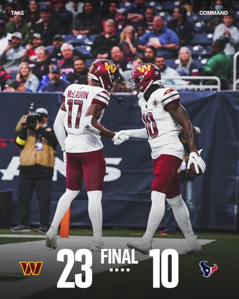 The creative ways we use Curtis Samuel in the running and receiving game are exceptional. Our one-two-punch combo of Antonio Gibson and Brian Robinson is working out terrific, running hard, and gaining solid yards. It was great seeing Logan Thomas getting some production. The O-line is playing much better. Plus, Joey Slye has been money on every kick. Collectively, this offense is getting it done