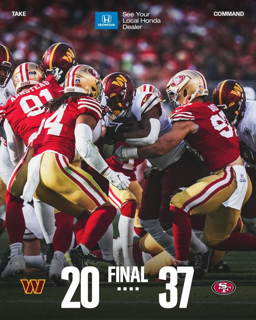 The Defense did pretty well containing San Francisco’s dynamic running backs, especially Christian McCaffrey. But George Kittle and Brandon Aiyuk killed us through the air. I was happy to see Chase Young back; He looked pretty good and was disruptive.