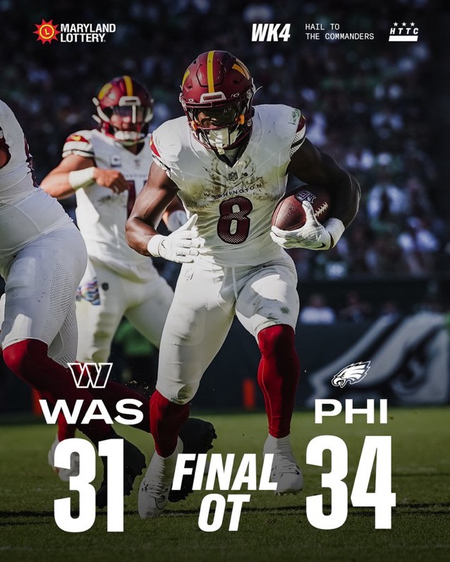 Defensively, it felt like a bounce-back performance from the embarrassing showing against Buffalo on week 3. I’m still waiting for Chase Young to start making a difference. First-round pick CB Emmanuel Forbes had a rough game. But he is a Rookie, so some growing pains here and there should be expected. Nevertheless, Kendall Fuller and Kamren Curl are having a strong season.