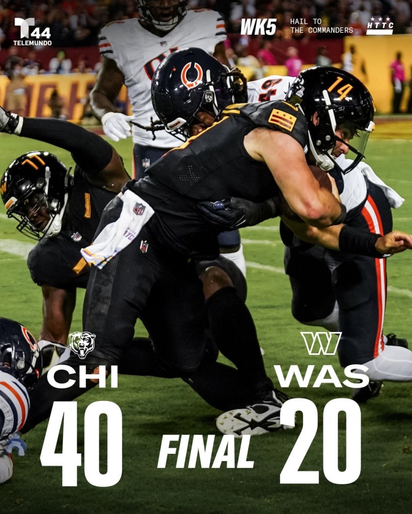 We had no answer for DJ Moore, and Emmanuel Forbes struggled on coverage again — both Philadelphia and Chicago picked on Forbes; he is missing tackles and giving up huge plays. Forbes was drafted to be an immediate starter and provide this team with turnovers. And it is not happening. The Entire Defense did not show up; busted coverages and missed tackles. That was the story of the game — On top of that, we lost Safeties Darrick Forrest and Jeremy Reeves to IR, deepening all the secondary issues.